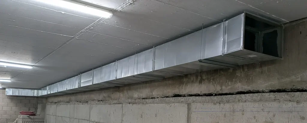 Ensamblado y montaje de redes de conductos metálicos para alta capacidad. La chapa galvanizada es la solución excelencia para proyectos que requieren la máxima resistencia mecánica y durabilidad, siendo el material indispensable en sistemas de extracción de humos, ventilación industrial y áreas técnicas.
