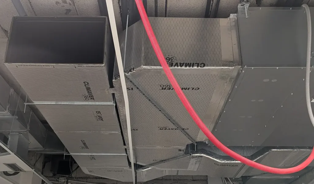 Fabricación y montaje de conductos de fibra de alta densidad. La solución estándar para optimizar el aislamiento térmico y el confort acústico.